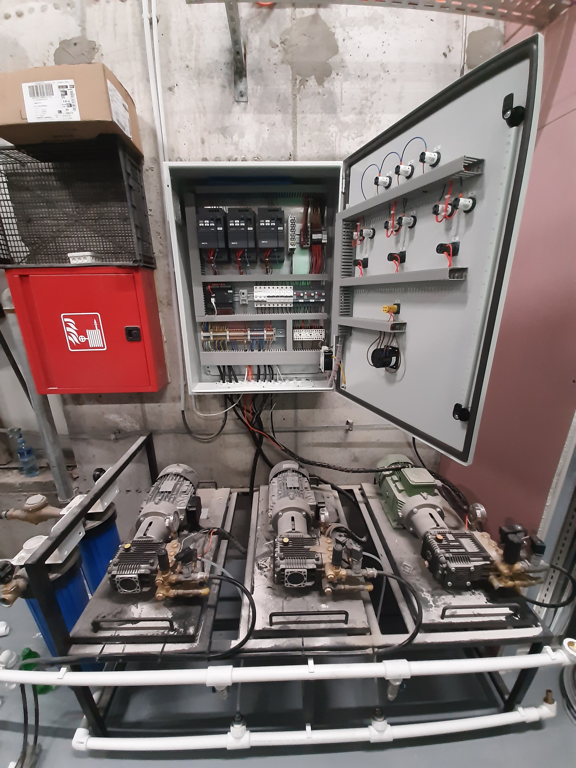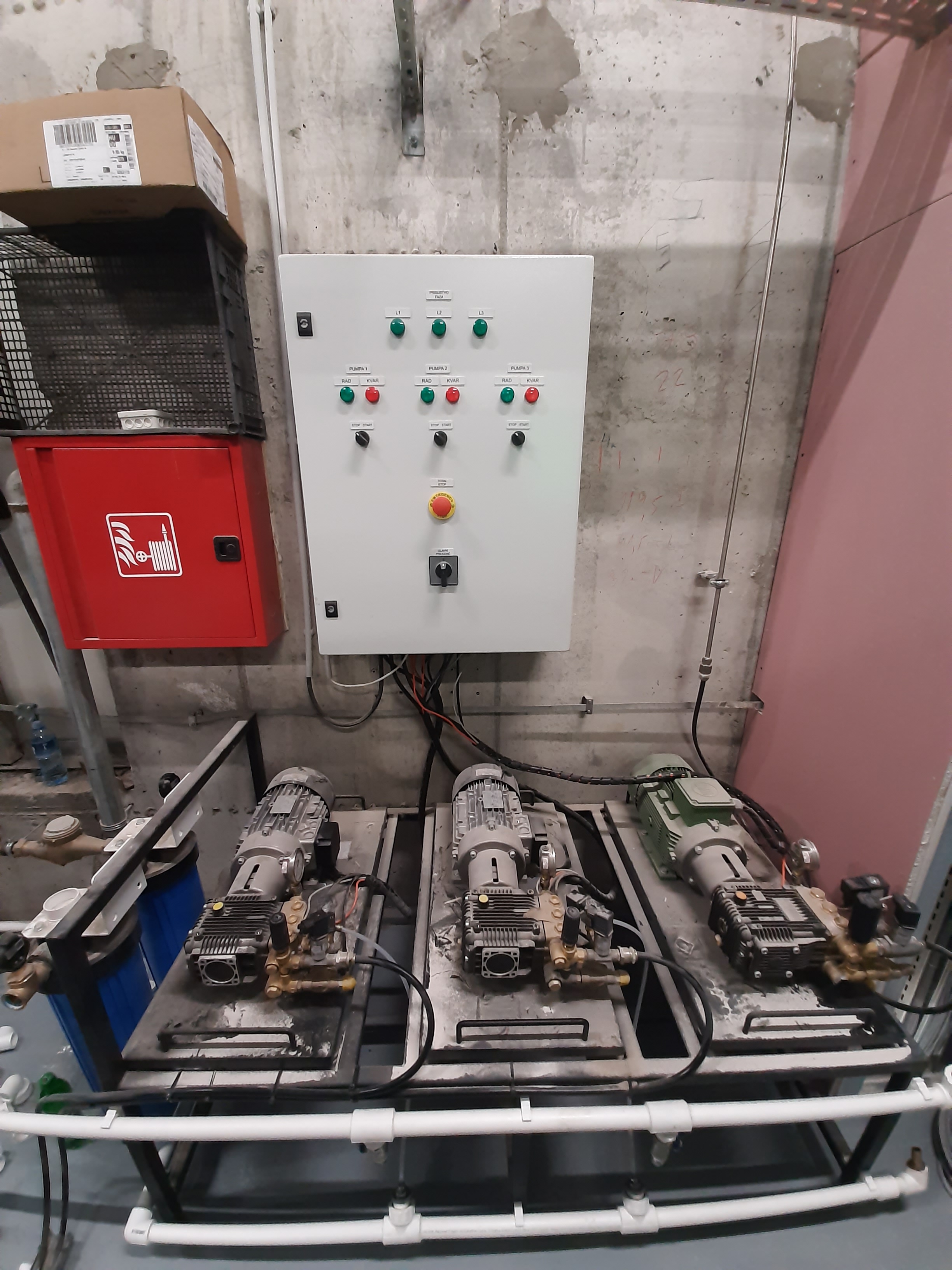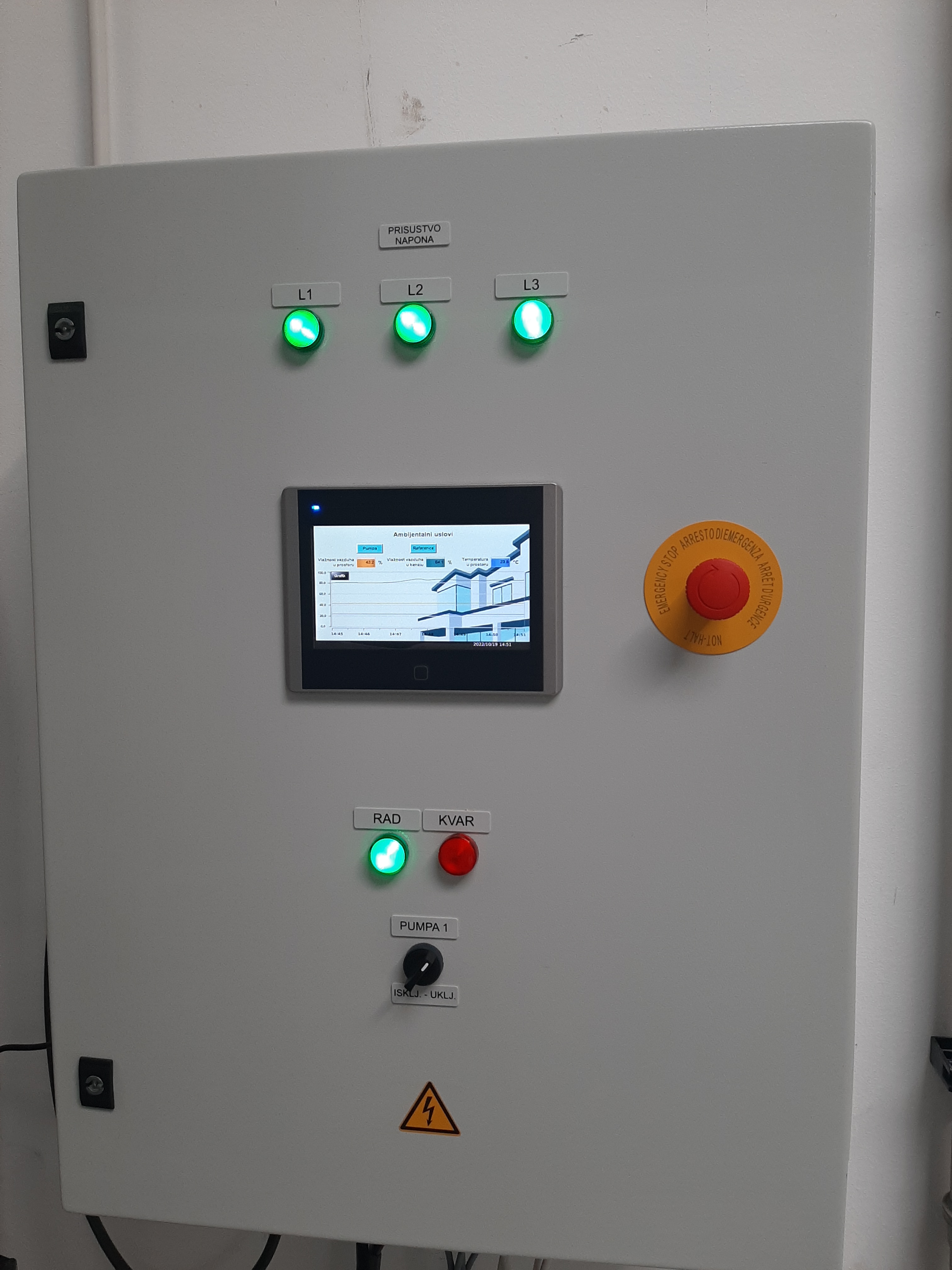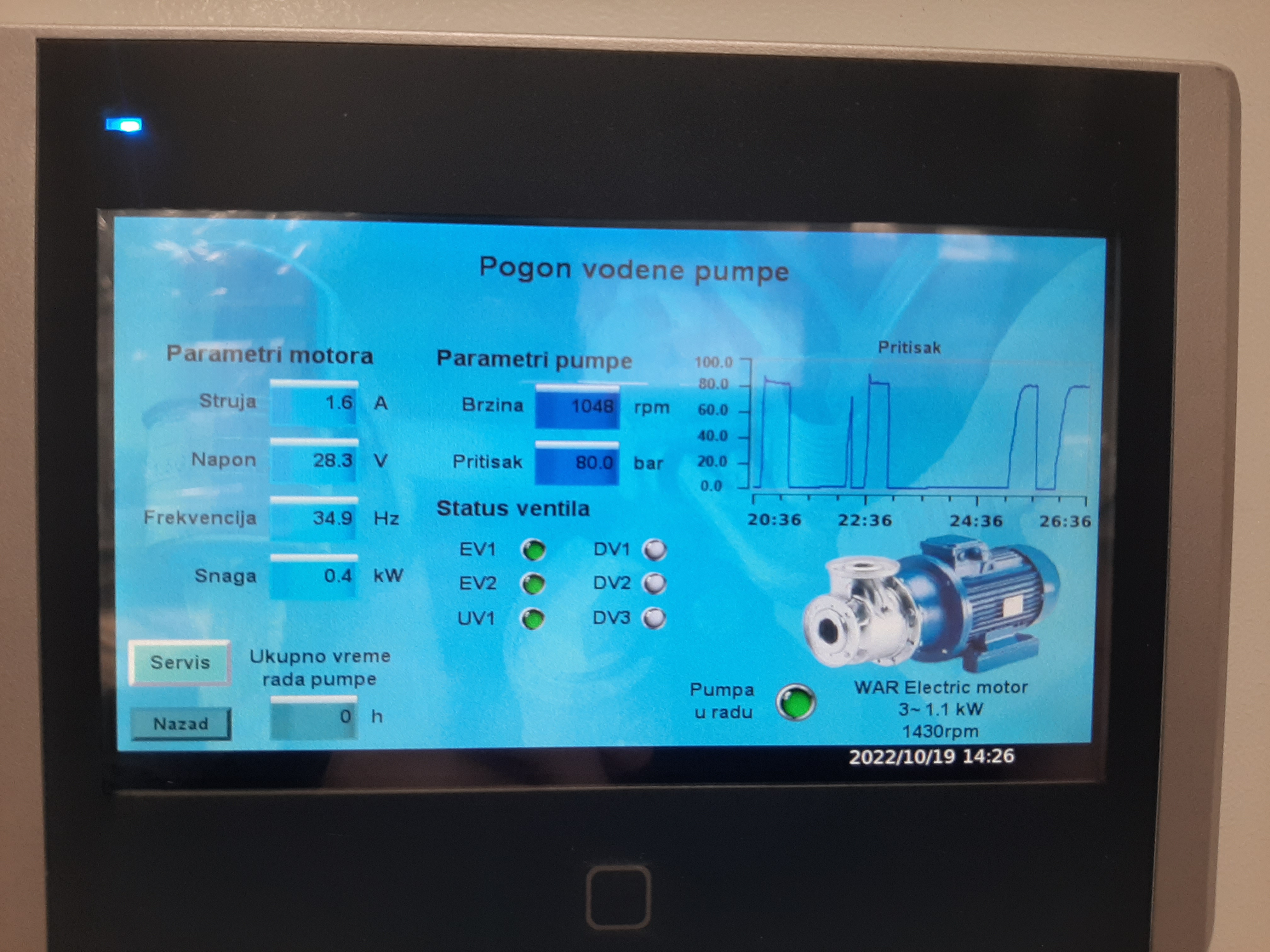 Parametrizacija, puštanje u rad i testiranje frekventno regulisanog pogona pumpe (procesno regulisanog po pritisku) za adijabatsko hlađenje.